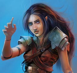 Tereg: Half human and half sidhe, Tereg is Mirin’s protege and believes firmly that there is no such thing as a fixed fate. (art by L.Bayless) |